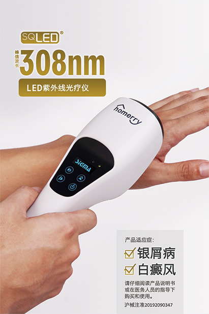 某兒童患者,頭皮部白癜風,按照醫(yī)生指導,剪短頭發(fā)后進行照光治療,隔日一次。使用308 SQ LED治療一個半月,白斑面積顯著縮小;繼續(xù)光療三個多月,基本痊愈。